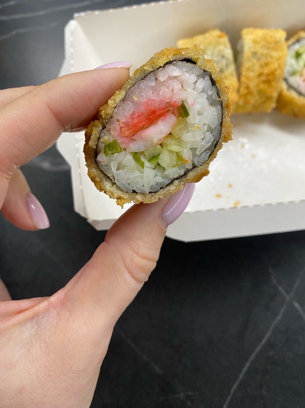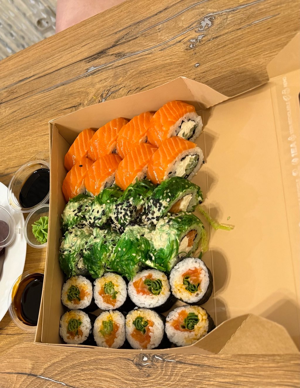Вкусные и свежие суши, но лучше не ложите неспелый авокадо в суши портит все впечатление, не жуется приходится выковыривать, нет спелого - лучше тогда вообще никакого