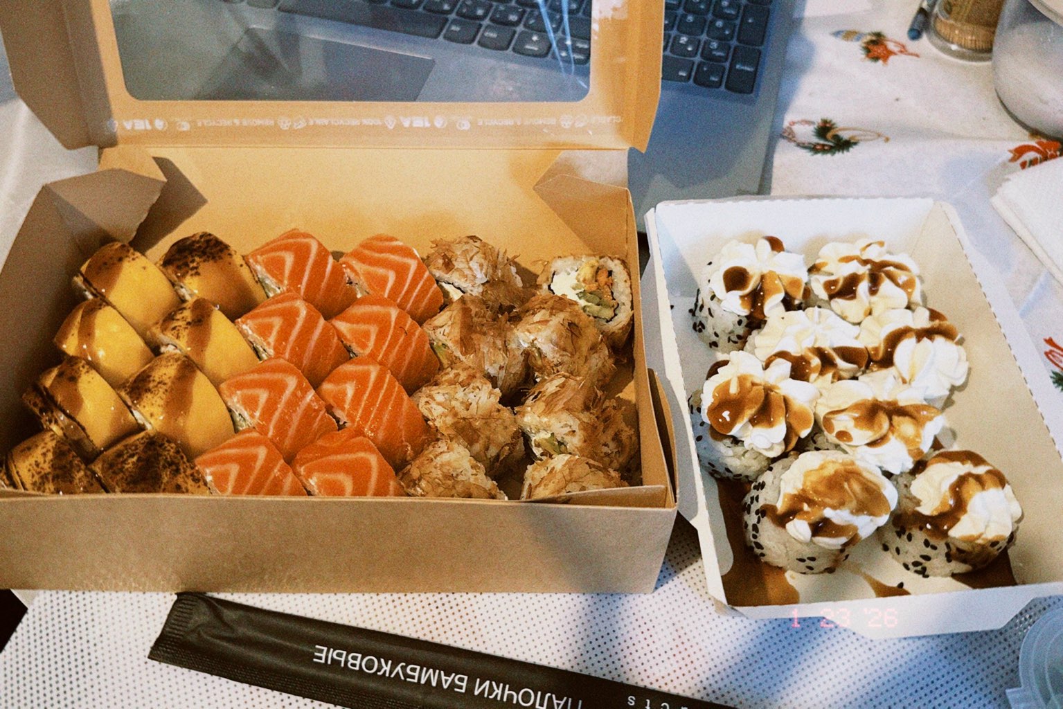 Пару лет как заказываем через сливки сеты данного заведения. Всегда все супер было (как на первом фото). Бывало, конечно, рис сыроватый, но пойдет. Но в этот раз Филадельфия в сете прям с прозрачной прослойкой рыбы (второе фото). Это как вообще, вы по настроению крутите роллы?