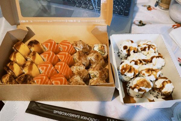 Мне ни разу, Ни разу не доставили заказ в обещанное время. Даже когда заказ был сделан предварительно. Был один заказ, который задержали настолько, что когда его привезли, я поставила роллы в холодильник, потому что было уже настолько поздно.
