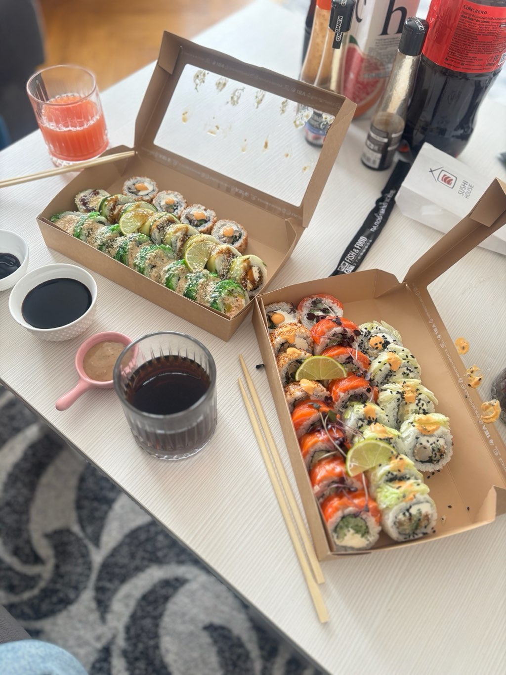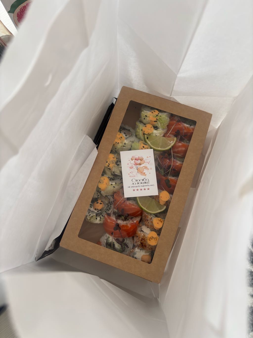 очень порадовали!! Вкус бомба, внешний вид на высоте, + много рыбы. Ожидание около 40 мин (даже раньше заявленного) 👍🏻Очень приятный курьер!!!!!