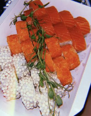 Суши очень вкусные,рыбы не пожалели,все свежее,превезли за полтора часа,советую всем