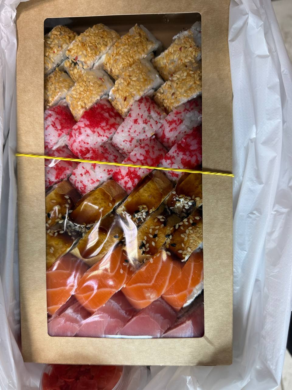 Сет просто бомба 100/100.... все очень свежее, привезли на 5 минут раньше, рис идеальный, начинка идеальная (нет такого, что риса много, а начинки мало, все идеально). Спасибо Вам огромное.