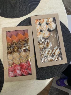 Заказывали на день рождения сет 2. Начинки много, тесто плотное (не разваливается). Всем очень понравился сладкий (банофи: насыщенный банановый вкус, сгущенка добавляет немного сладости и не перебивает вкус банана), тем более раньше такой не пробовали. Курица и брокколи: очень нежный по текстуре. С тунцом мне больше всех понравился, очень сытный.