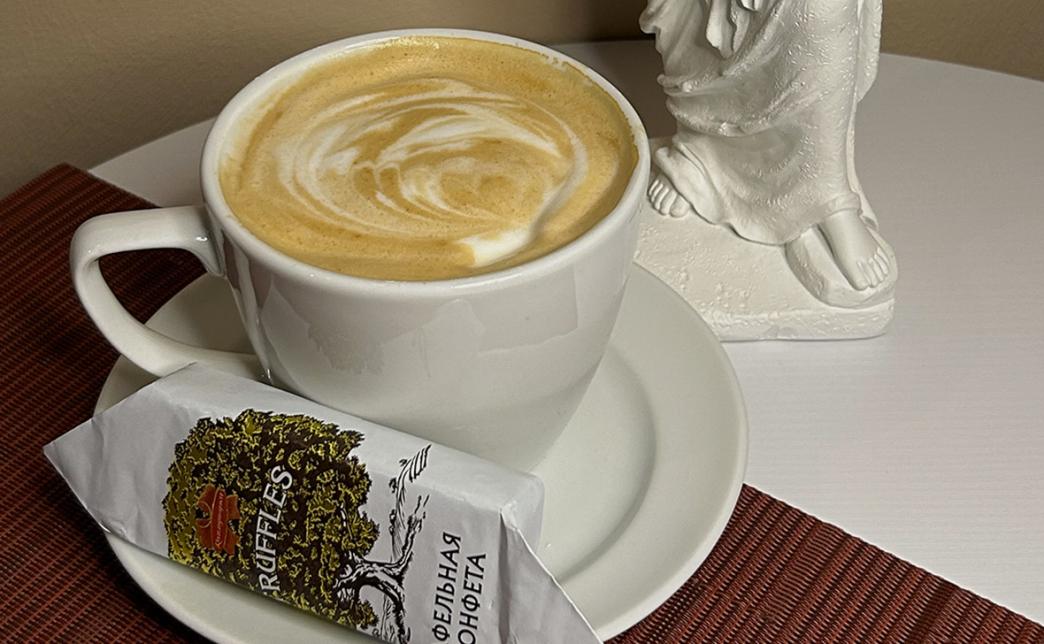 Состав: горячий напиток "Флэт Уайт", большая конфета