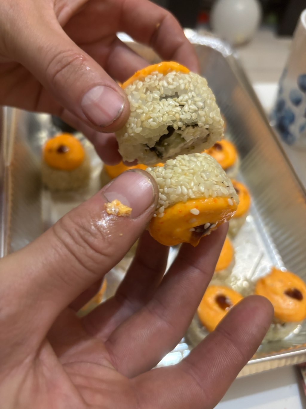 - ролл "Гриль краб": рис, нори, снежный краб, тобико, кунжут, соус унаги, соус для запекания - 8 шт.