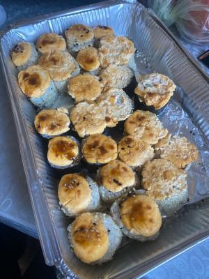 - ролл "Гриль миди": рис, нори, мидии, огурец, сливочный сыр, кунжут, соус для запекания, соус унаги - 8 шт.