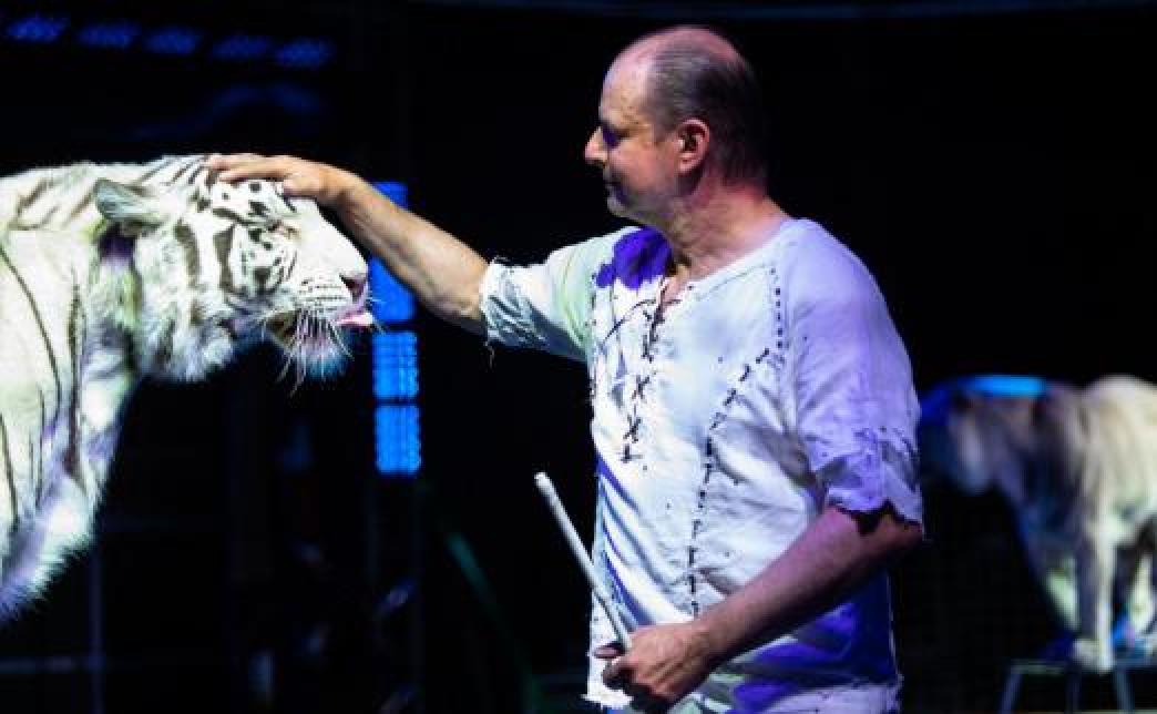 Грациозные хищники - белые тигры - впечатлят зрителей своей силой и элегантностью. Благодаря особой заботе и воспитанию дрессировщика, эти прекрасные и редкие животные могут исполнять трюки, позволяя зрителям воочию насладиться их мощью и великолепием!