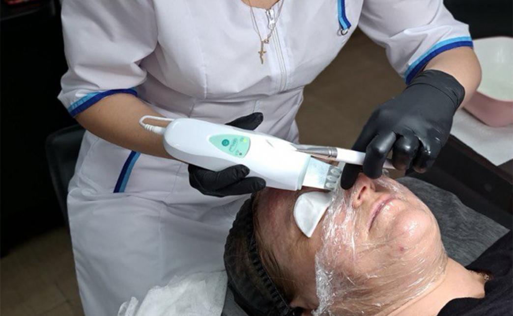 Это аппаратная чистка кожи с помощью ультразвука. Наконечник прибора создает высокочастотные колебания, которые "сбивают" с